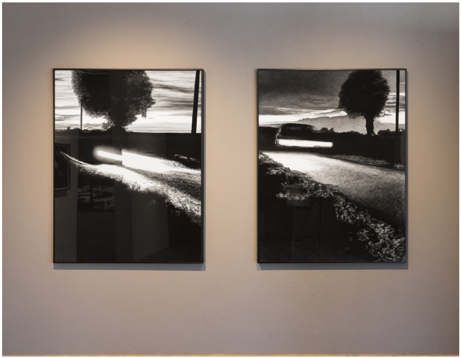 de papier japonais, de la gouache, des pastels noirs. Le geste est