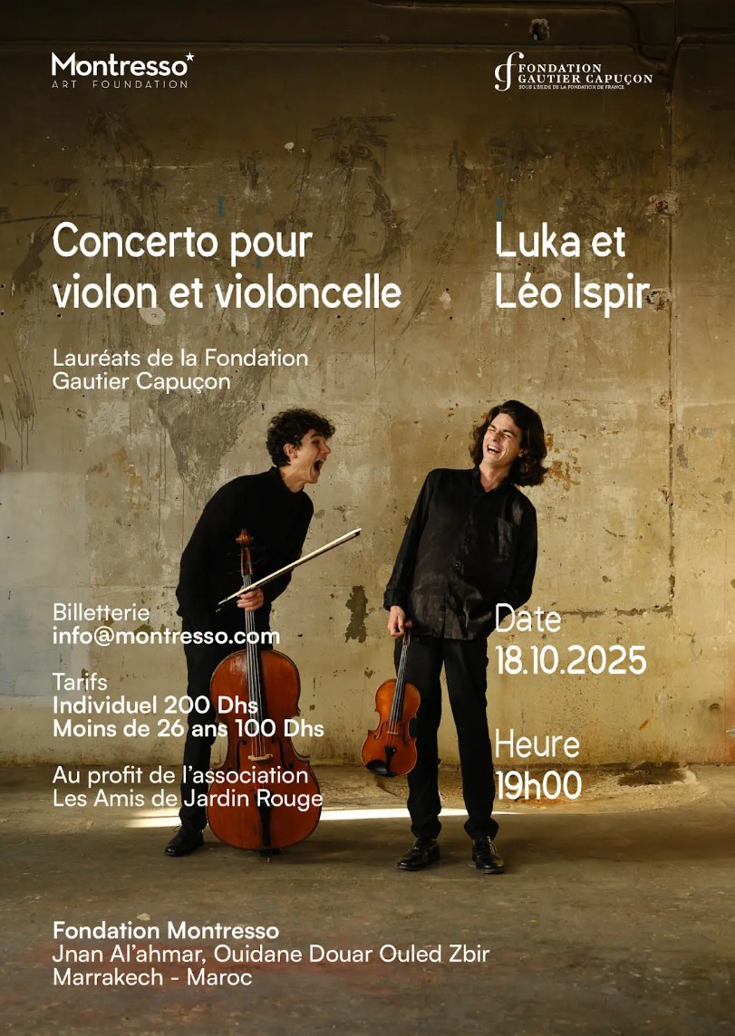 L’exposition sera inaugurée le 18 octobre par un concerto pour violon et violoncelle, interprété par Léo Ispir et Luka Ispir, en partenariat avec la Fondation Gautier Capuçon